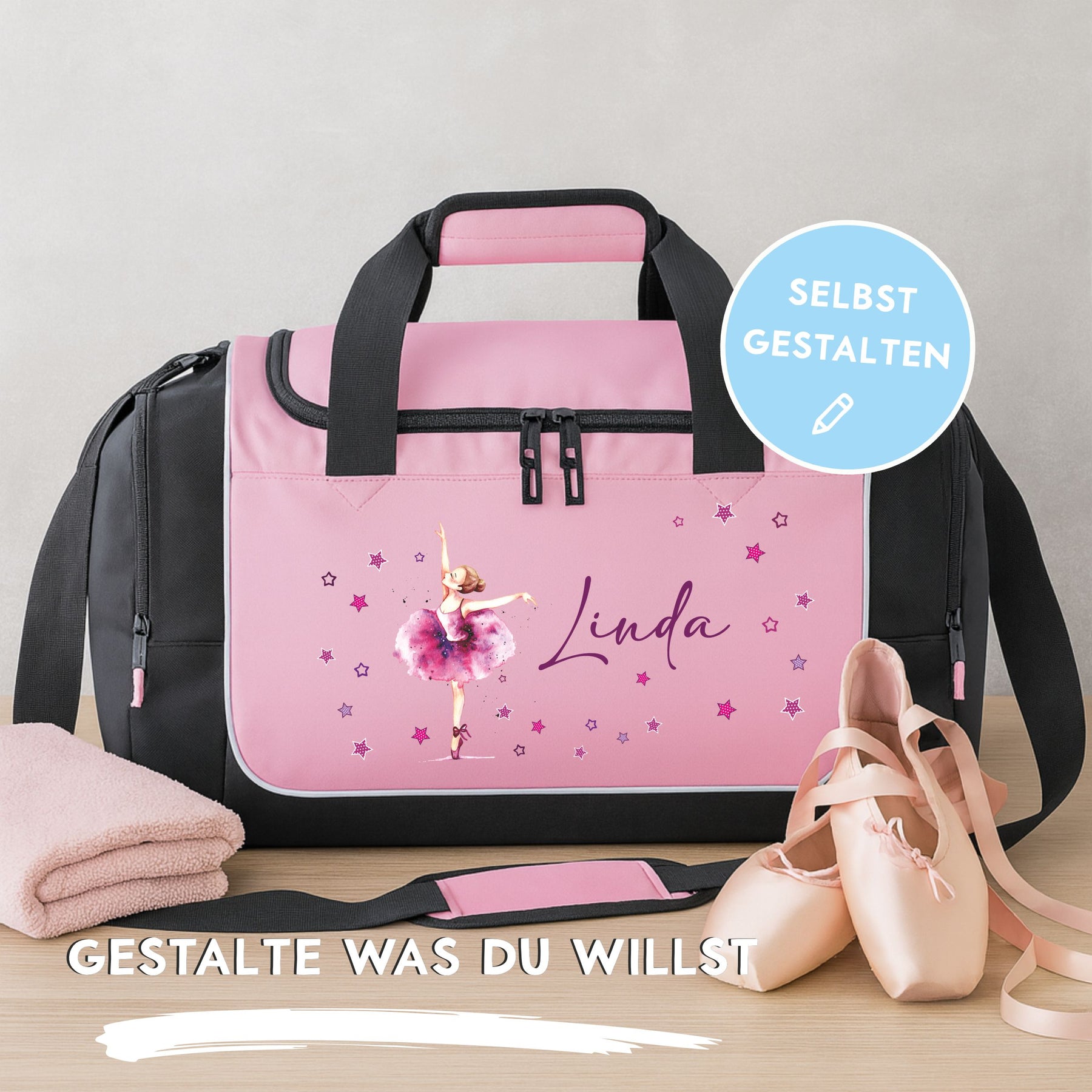 Verwechslungsgefahr adé: Du kannst die Tasche mit dem Namen deines Kindes und einem Wunschmotivpersonalisieren – ganz einfach im Bestellprozess angeben. So wird jede Tasche zum unverwechselbaren Einzelstück und dein Kind erkennt seine Sporttasche auf den ersten Blick.
